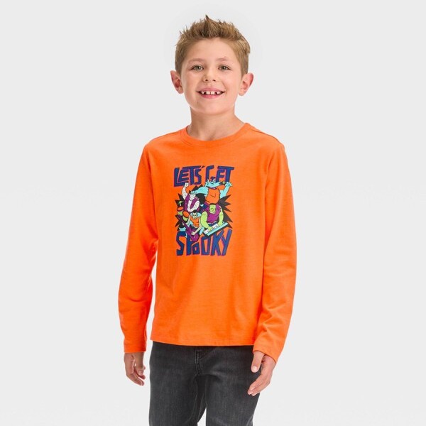 Boys' Long Sleeve Halloween 'Lets Go Spooky' Graphic T-Shirt - Cat & Jack™ Orange by Cat & Jack https://shopstyle.it/l/bZo2F