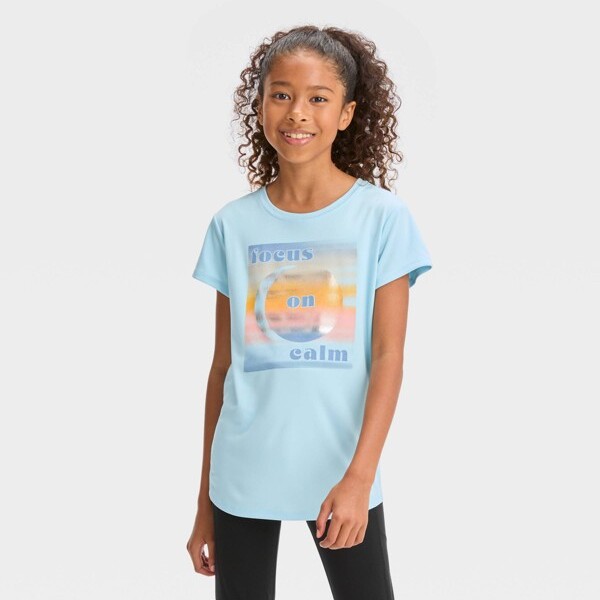 Girls' Short Sleeve 'Focus On Calm' Graphic T-Shirt - All in Motion™ Light Blue by Target https://shopstyle.it/l/bZo3T