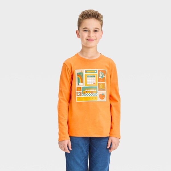Boys' Long Sleeve School Graphic T-Shirt - Cat & Jack™ Light Orange by Cat & Jack https://shopstyle.it/l/bZo2Q