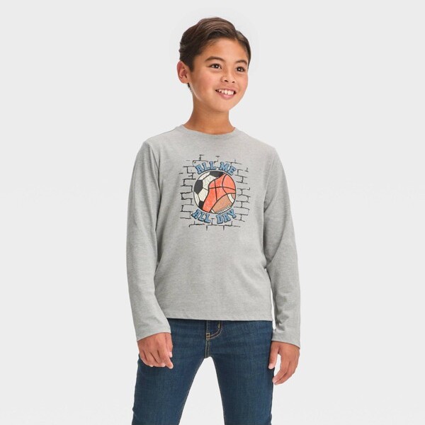 Boys' Long Sleeve 'All e All Day' T-Shirt - Cat & Jack™ Charcoal by Cat & Jack https://shopstyle.it/l/bZo3m